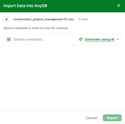 You can either create a new template using a AI prompt, Import data from XLSX or CSV or start from scratch.