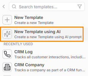 To create a AI based template, click on Add and New Record and select βNew Template using AIβ