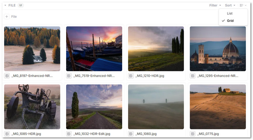 - Records now support Grid View so that it is easier to list records visually. This is supported for any template records or files