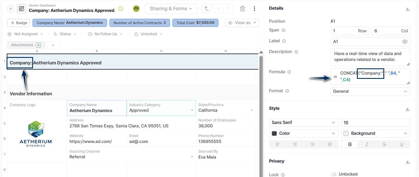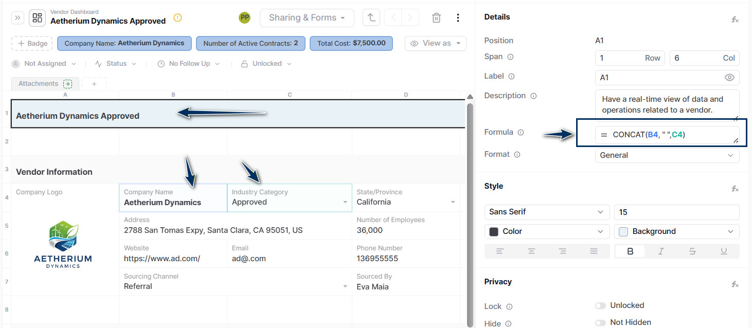 You can easily see what a record is about and its current status and key details in a single line. Also, you can save time by copying and pasting the formula into master cells as needed.
