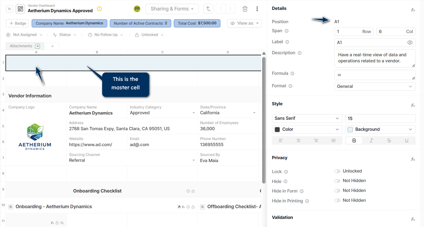 - Select the master cell where you want the data to appear