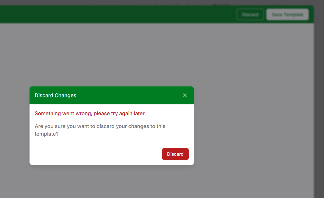If I try to the edit the template the system gets in a loop. Discard the editing does not work. The error message gets in a loop also. I need to stop edge to get back.