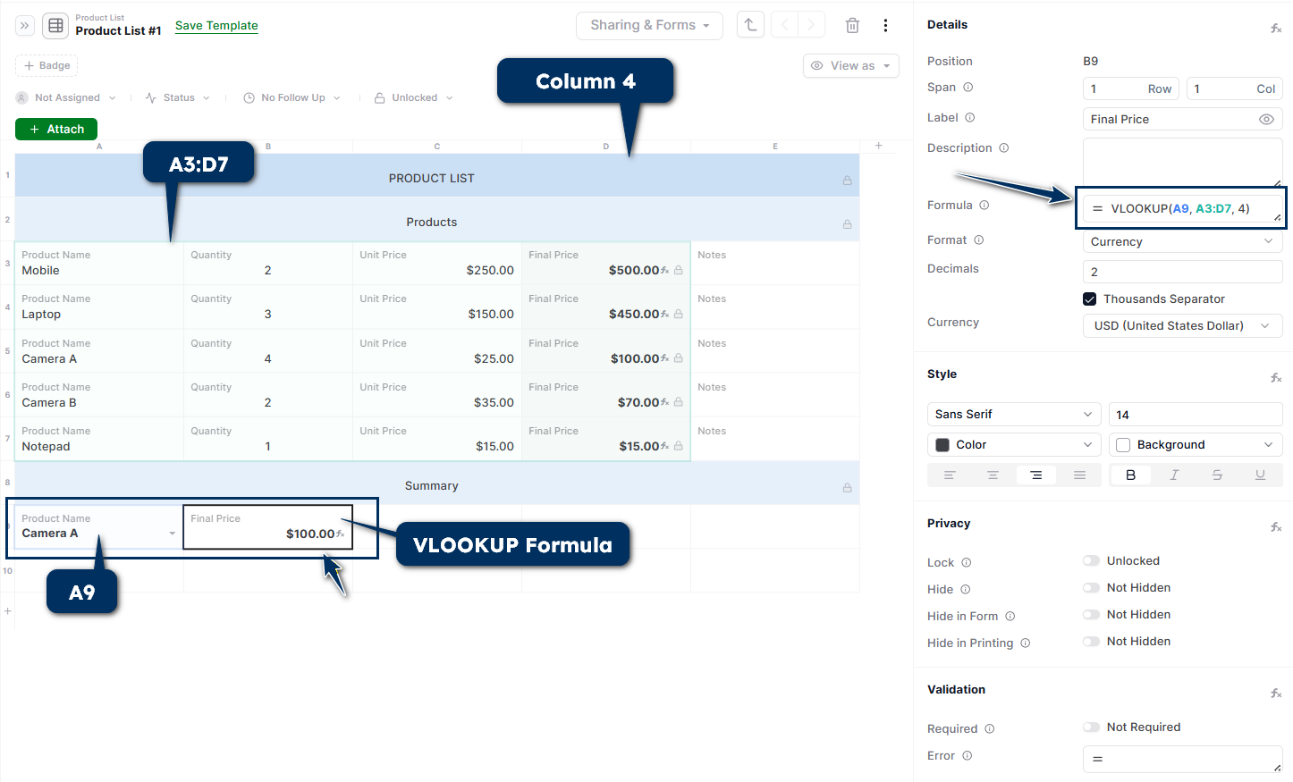 Here is how to use the VLOOKUP formula in AnyDB (as easy as Excel)