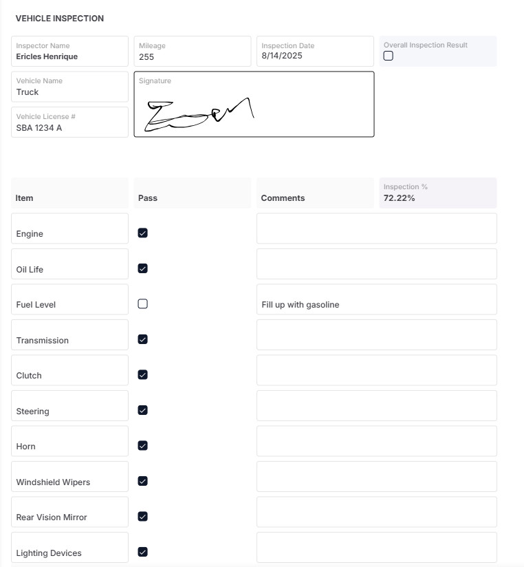 My first template/solution: a vehicle inspection/checklist