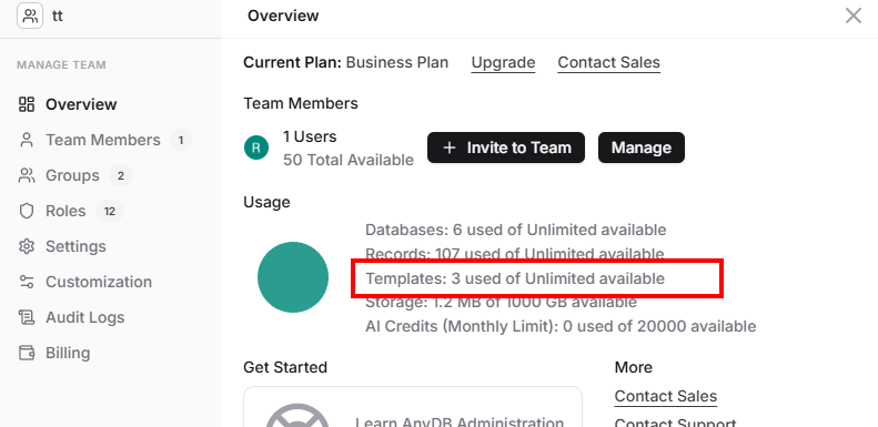 It does show that there should be 6 templates but I only see 5 versions of 1 template. Do all 5 count for my quota of 25 free templates? If versions also count for templates then I miss a template (it mentions 6 but I see only 5). - No, the versions of the template doesn’t count towards your limit. This count shows all the templates in the system including versions. For the quota details, you can check the overview tab. That should give the templates count against quota.