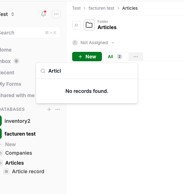 So I created a new Article record template and next i go to the foilder and try to add a new article.