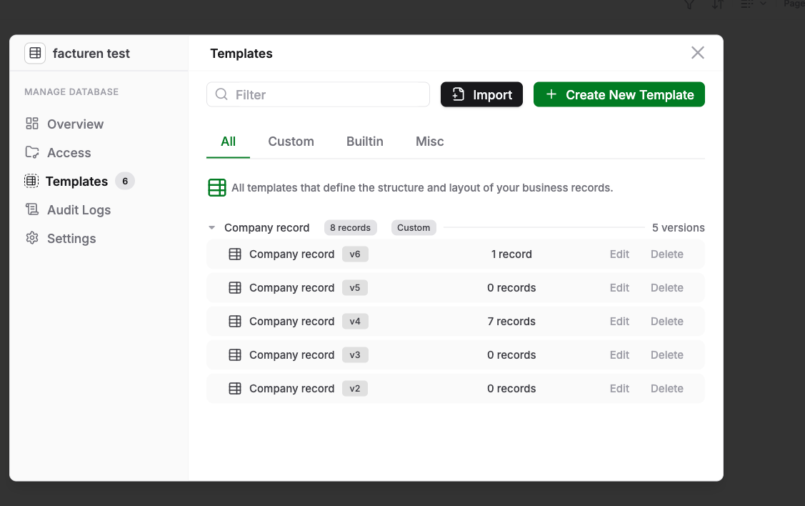 If I delete the oldest version of the Company template (v2) then this popup refreshes and it shows that it has deleted all the other old versions also. It says “1 version” in the right-top corner.