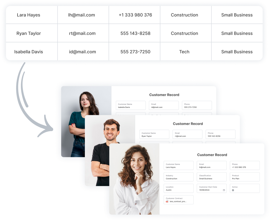 If your data looks like a table, each row becomes a live, connected AnyDB record ready to track, assign, and scale.